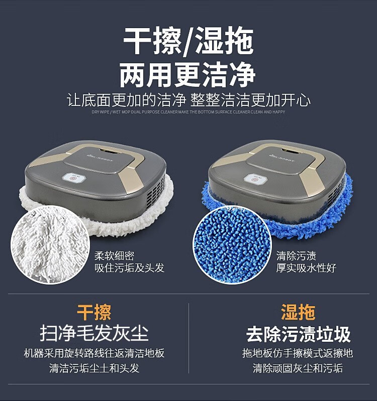 洁宝莱全自动智能家用拖地神器机器人一体抹擦扫地机湿拖洗地干湿二用黑升级版(自动清洗抹布 4条抹布)