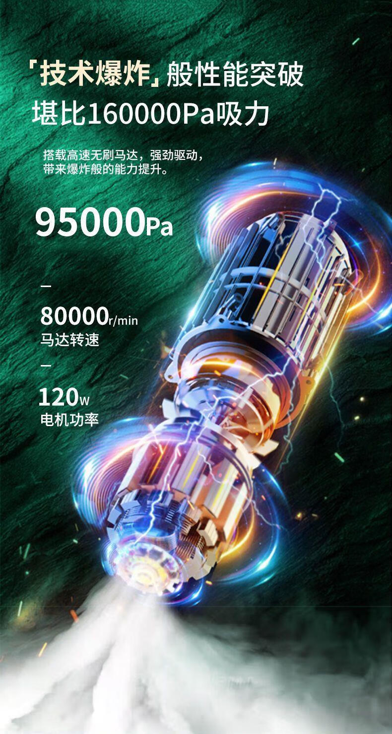 苏泊(SUIPOR)尔同样式无线车载吸尘器车用汽车小型家用手持室内大吸【车用款】小吸力2万转速尊贵绿
