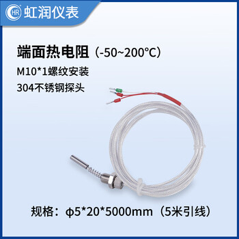 虹润热电阻pt100温度传感器引线式测温探头端面热电阻φ5×20×5000mm