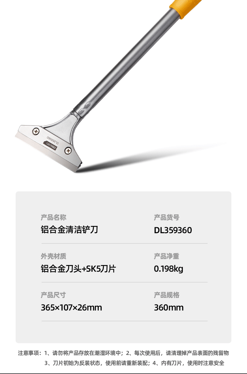 铝合金清洁铲刀开荒保洁工具套装玻璃胶美缝剂清缝刀刮污刀瓷砖刮刀除胶铲子刮胶神器 260mm重型铝合金清洁铲刀DL359260Z